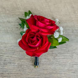 White Rose Corsage with Emerald Green & Gold Ribbon